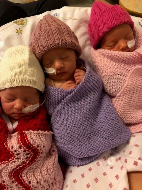 Michelle: Vi har vært utrolig heldige med ingen utfordringer. Jentene måtte kun ligge på varmemadrass i starten, og hadde sonde i nesen. To av tre dro hjem fra sykehuset uten sonde 12 dager etter fødsel.